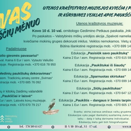 Kovas – paukščių mėnuo Utenos kraštotyros muziejuje!