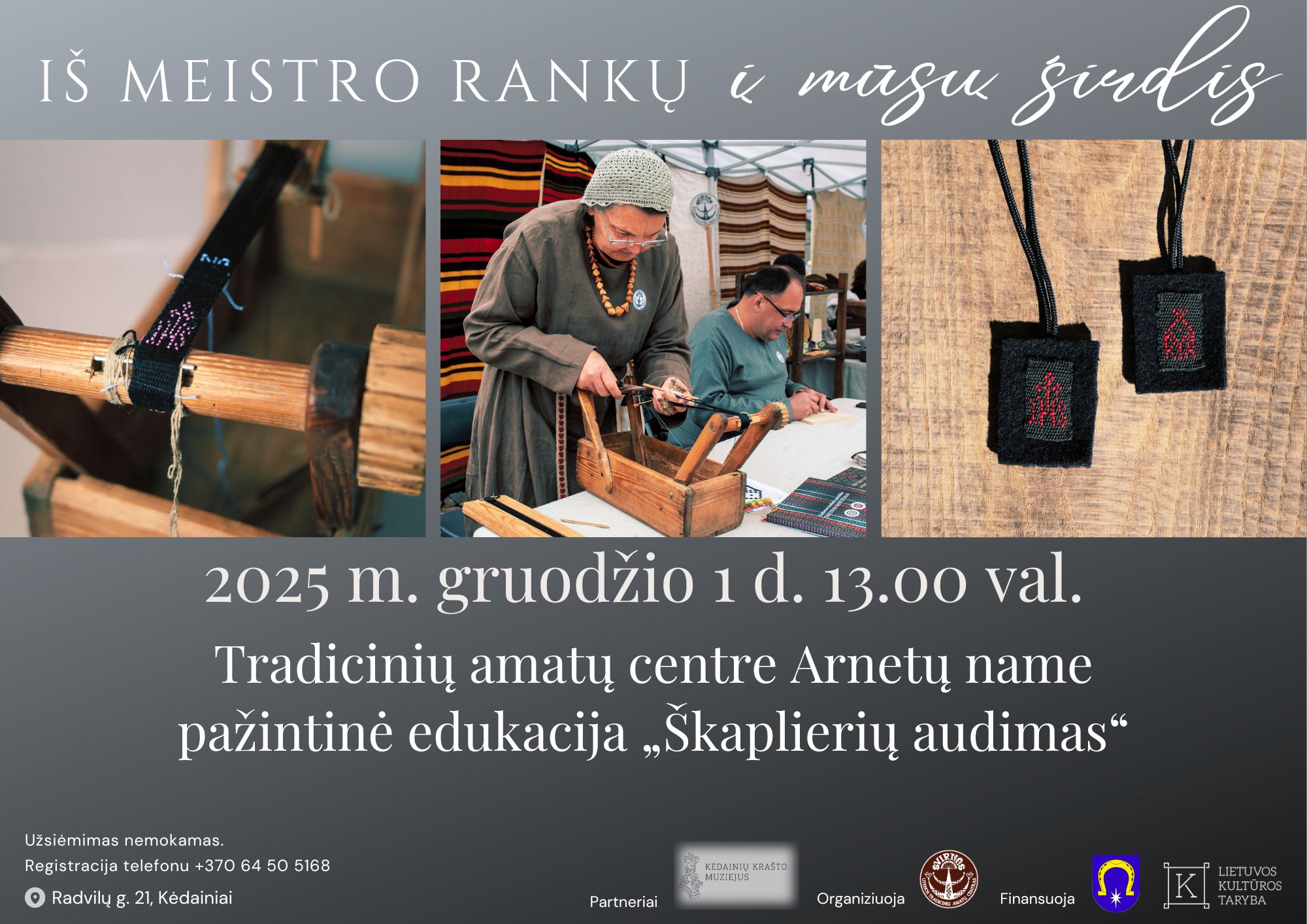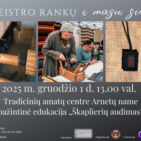 2025 m. gruodžio 1 dieną vykstame į tradicinių amatų centrą Arnetų name. Projektas: IŠ MEISTRO RANKŲ Į MŪSŲ ŠIRDIS