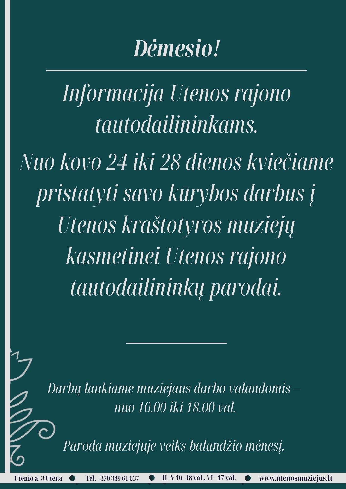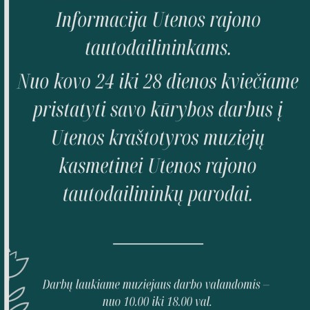 Utenos rajono tautodailininkų dėmesiui!