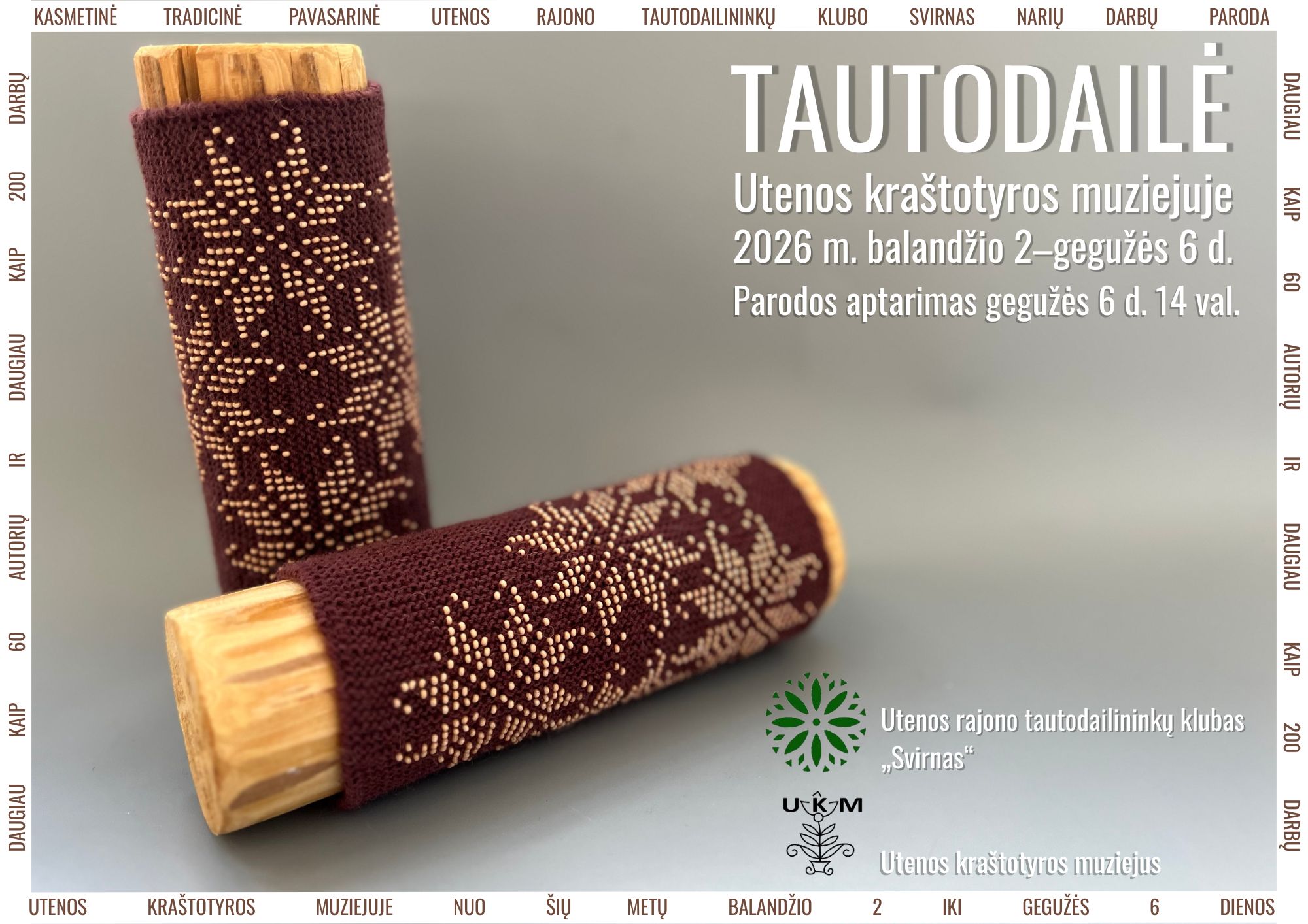 2026 m. balandžio 2–gegužės 6 d. Utenos kraštotyros muziejuje tradicinė Utenos rajono tautodailininkų darbų paroda. Susitikimas su autoriais 2026 m. gegužės 6 d. 14 val.